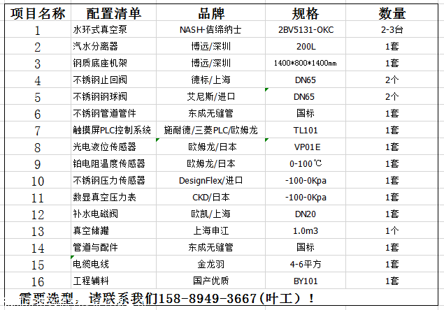 医用中心吸引力站装置集成真空负压机组参看以下配置: